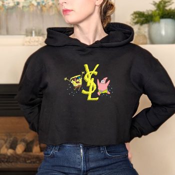 Yves Saint Laurent Logo Luxury Spongebob Crop Pullover Hoodie For Lady CPH1978
